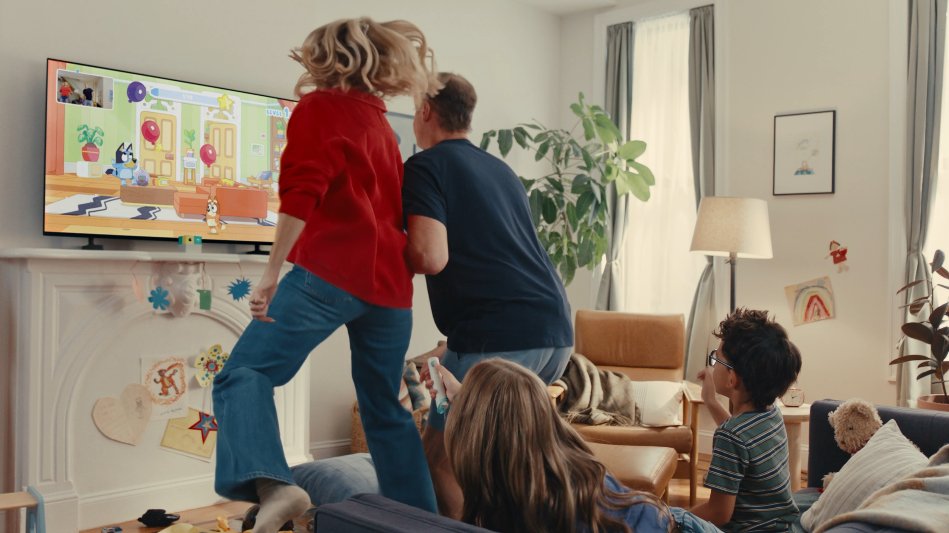 Join Bluey and her family in active games like Musical Statues, Keepy Uppy, Squash, and more in Bluey: Bust-a-Move, exclusively on Nex Playground with Play Pass.
